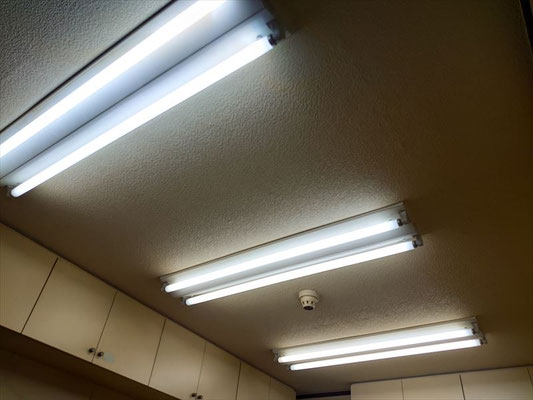 新たに位置を調整し直して穴あけを行い、現代的な薄型デザインかつLED仕様の明るい照明へと交換いたしました。