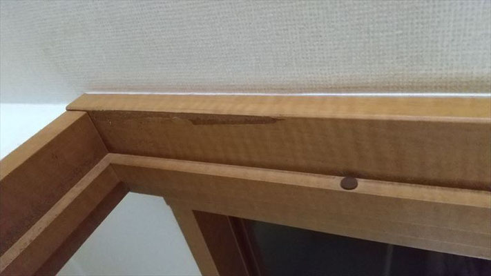 こちらの現場では、各所の建具枠の表面材が部分的に剥がれてしまっている状態でした。