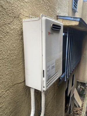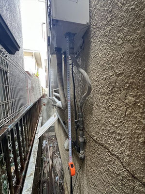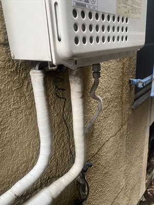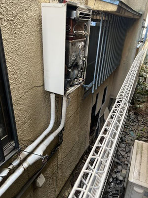 外壁に設置された給湯器の交換工事を行いました。