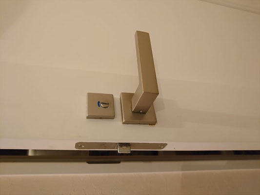 経年劣化により不具合が生じていたドアノブおよびラッチユニットの交換を実施。