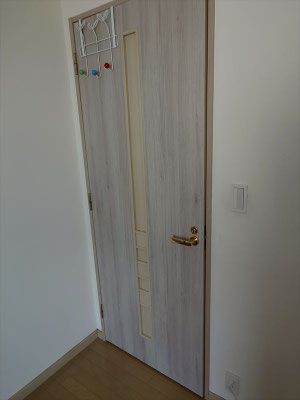 経年劣化により全体的に色褪せが目立っていたドアを、木目調のシートにてリニューアル。