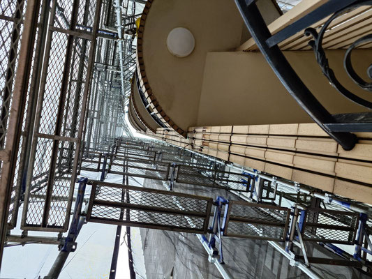 作業では、専用の工具を使い、重量を考慮しつつ小分けに丁寧に解体し撤去。