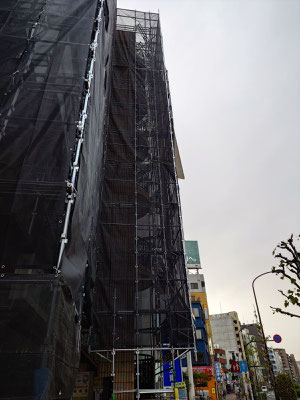 足場が設置されている現場のため看板までアプローチは簡単です。